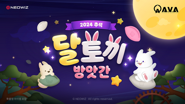 온라인 FPS(1인칭 슈팅)게임 ‘아바’는 ‘달토끼 방앗간 이벤트’를 진행한다. 매일 퀵매치 한 판을 완료하면 이벤트 재화인 ‘보름달’과 다양한 보상이 포함된 ‘랜덤 박스’를 증정한다. 또 각종 미션 통해 분홍 송편, 하얀 송편, 쑥 송편 모아 조합하면 랜덤 총기 1정을 획득할 수 있다. 송편 모으기 및 조합은 무제한으로 참여 가능하며, 획득한 랜덤 총기는 이벤트 재화인 ‘보름달’로 교환한 뒤 ‘보름달 교환소’에서 확정 총기, 메카닉 복구권 등 원하는 아이템으로 변경할 수 있다.